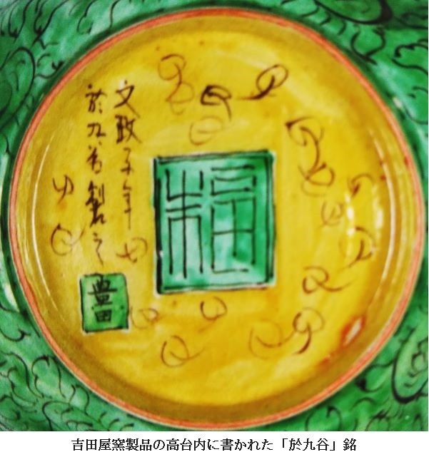 吉田屋窯製品の高台内に書かれた「九谷」