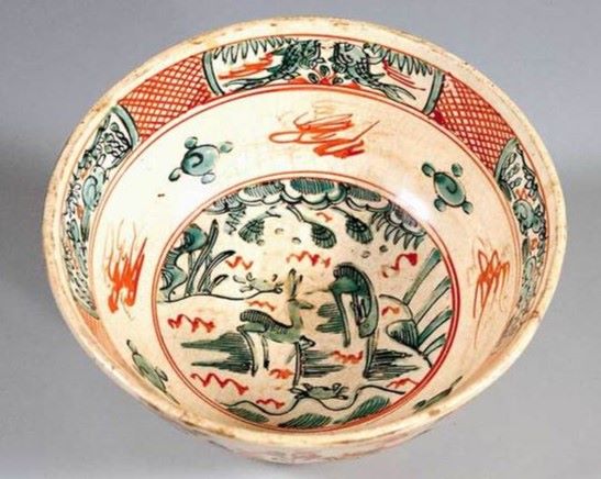 「八郎手」の特色は方氏墨譜から得た中国風の人物・山水・楼閣・動物などをモチーフにした図案とその周囲を小紋で埋めた赤絵細描画でした。そして、八郎右衛門は血赤と呼ばれる「赤色」に発色するように、豆腐屋八兵衛の下で赤色釉薬(吹屋弁柄であったといわれる)の造り方を修得したと見られます。