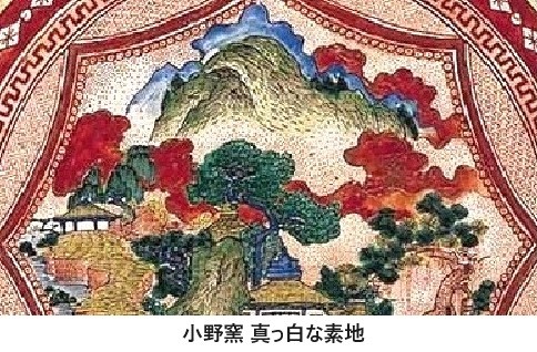小野窯の素地は若杉窯ほどの真っ白で硬い磁胎でなかったものの、松屋菊三郎、九谷庄三(幼名 庄七のころ)らによって絵付された製品や、民山窯の赤絵細描と斉田伊三郎の佐野赤絵が混合したような製品が評判を呼んだように素地の品質が良かったといわれます。しかしながら、主工となる陶画工が入れ替わったので、素地専門の窯元として存続したものの、同5年(1872)に廃窯になりました。若杉窯と同様に、小野窯も素地が陶画工によって活かされたことがわかる事例となりました。